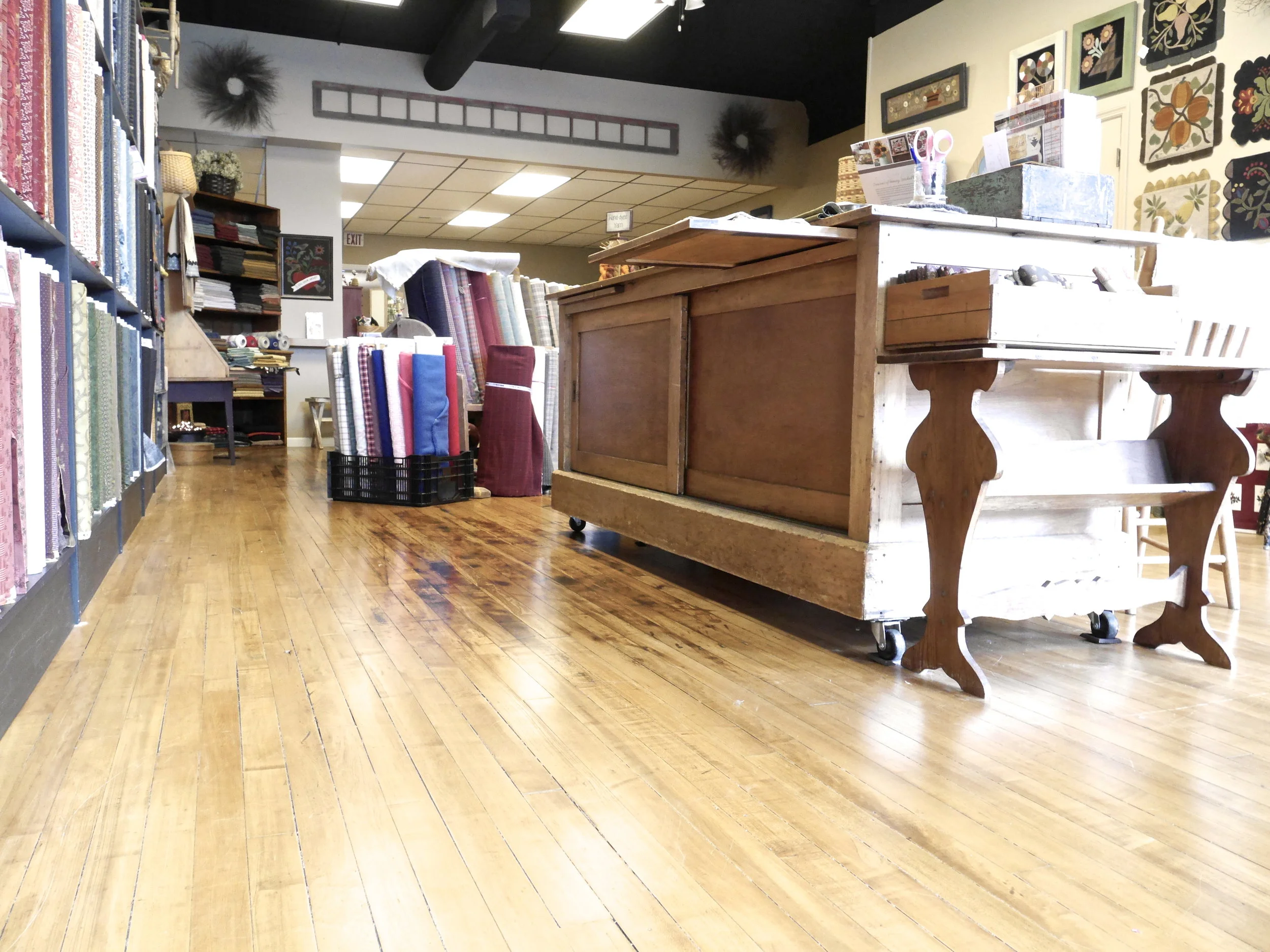A beautiful retail space at Treehaus Holdings LLC, this large storefront is one long expanse on two levels.